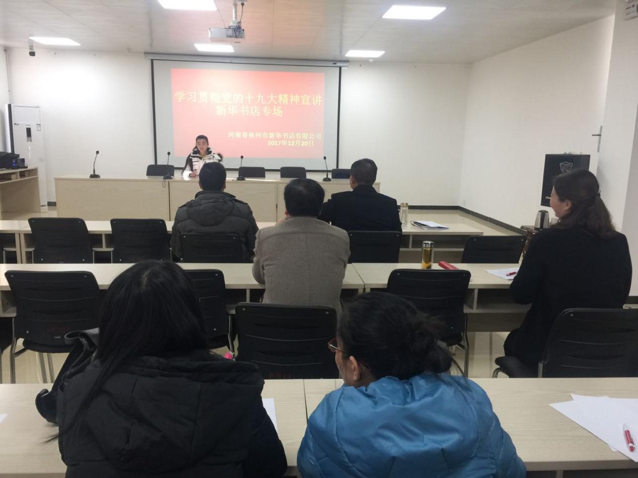 12月20日,林州市新華書店召開(kāi)學(xué)習貫徹黨的十九大精神宣講報告會(huì),邀請市委宣講團成(chéng)員、市委黨校教師張路爲公司全體幹部職工作宣講。公司黨支部書記、經(jīng)理劉進(jìn)明主持會(huì)議。