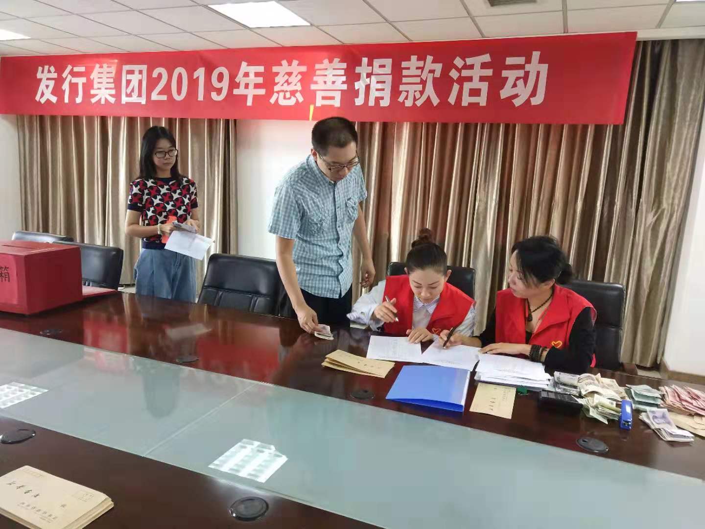9月26日上午,河南省新華書店發(fā)行集團在12樓會(huì)議室舉行了“迎2019鄭州慈善日”捐款活動,發(fā)行集團領導班子成(chéng)員發(fā)揮表率作用、帶頭捐款,各部門積極發(fā)動、踴躍響應,派出代表將(jiāng)本部門職工的捐款帶到了活動現場。發(fā)行集團黨委工作部提前準備、精心組織,對(duì)捐款人姓名、捐款部門和捐款人數等情況進(jìn)行了認真登記,對(duì)捐款金額進(jìn)行仔細清點,然後(hòu)由捐款人或捐款代表依次將(jiāng)捐助現金投入到捐款箱中。經(jīng)最終合計,當天共募集善款16000餘元。整個活動氣氛溫馨,暖意融融,充分展現了新華人熱心公益、扶弱濟困的傳統美德。