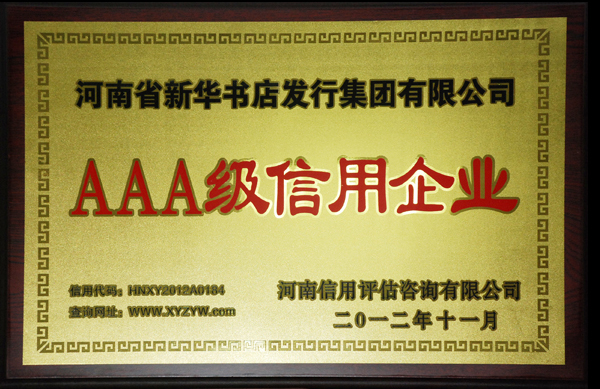 近日,河南省新華書店發(fā)行集團公司通過(guò)3A信用等級的審核評定,順利獲取3A信用等級證書。該等級爲企業信用評級的最高等級,隻有資信優良、資産質量優良、資金實力雄厚、經(jīng)濟效益高、支付能(néng)力強、具有良好(hǎo)發(fā)展前景和廣闊成(chéng)長(cháng)空間的企業才能(néng)獲取最高等級的評定。
