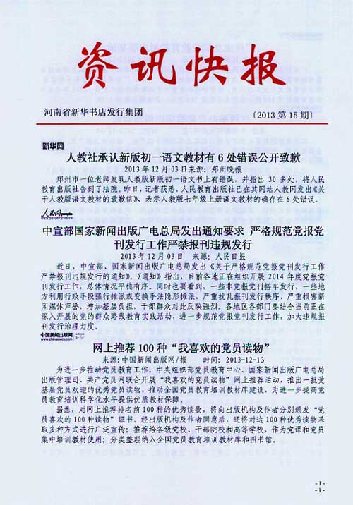來源:河南省新野縣新華書店有限公司  作者:河南省新野縣新華書店有限公司  發(fā)布時(shí)間:2013-12-13 16:19:39  閱讀次數:4071