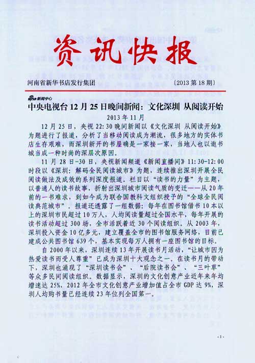 來源:河南省新野縣新華書店有限公司  作者:河南省新野縣新華書店有限公司  發(fā)布時(shí)間:2013-12-26 12:09:33  閱讀次數:4326